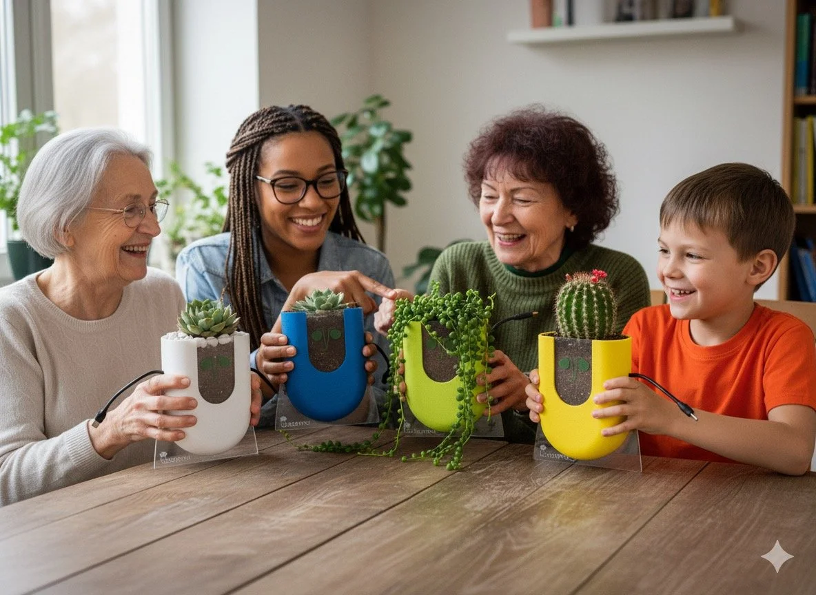 Además, cada maceta es única y puede conectarse con otras cercanas, fomentando la amistad y ayudando a construir una comunidad. Más que una planta, es compañía.
